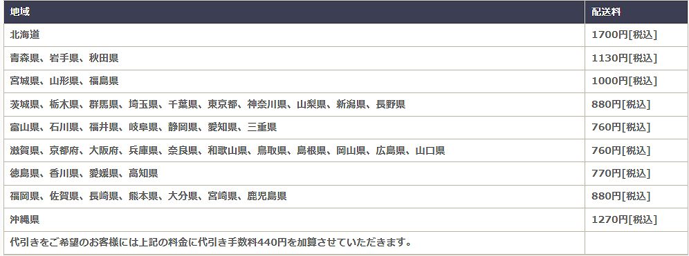 代引き発送をご希望のお客様は下記の宅急便送料と代引き手数料440円を加算した代金を配達員にお支払いください。